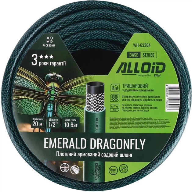 Шланг армований Alloid Base 3-х шаровий "Emerald Dragonfly" 1/2" 20 м (WH-63304)