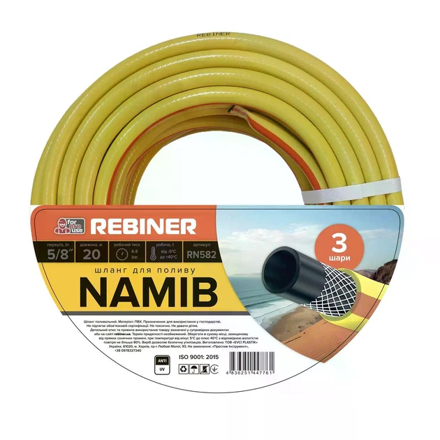 Поливальний шланг Rebiner RK582 20 м армований тришаровий діаметр 16 мм