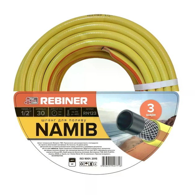Поливальний шланг Rebiner RN123 30 м діаметр 12 7 мм тришаровий армований