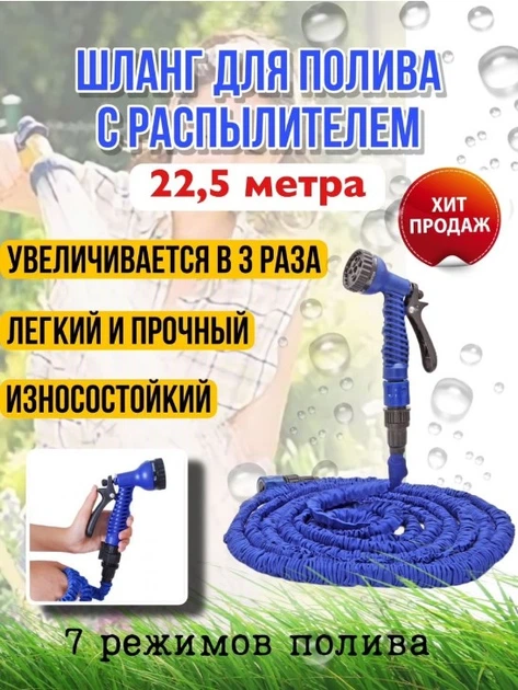 Шланг для поливу саду, що розтягується, X HOSE 22,5 м Синій + універсальний розпилювач