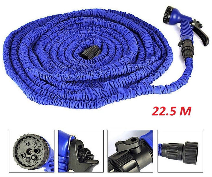 Садовий шланг із 7 режимами 22 м, гнучкий, що розтягується, для поливу та миття, синій