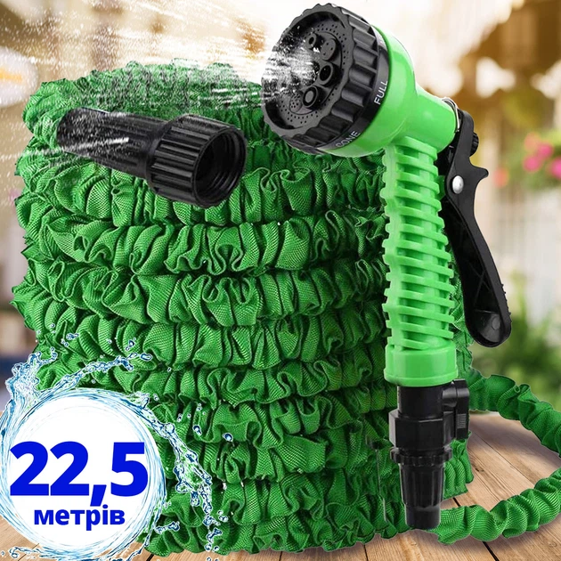Шланг для поливу X-hose 22,5 м Зелений садовий поливальний з розпилювачем для води на 7 режимів