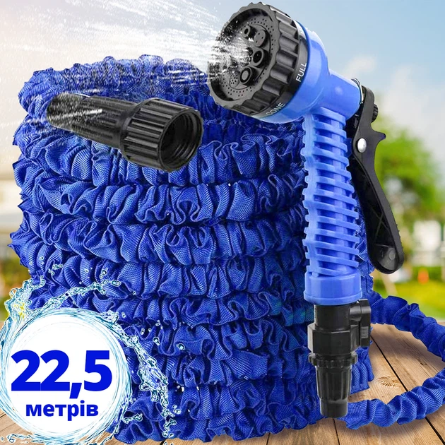 Шланг для поливу 22,5 м X-hose Синій садовий поливальний з розпилювачем для води на 7 режимів