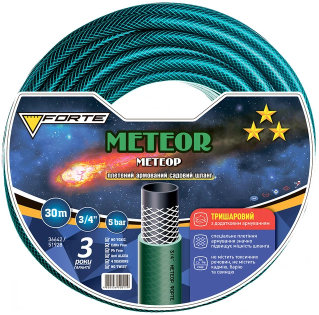 Шланг садовий для поливу Forte Meteor 3/4" армований 30 м (BP36642)