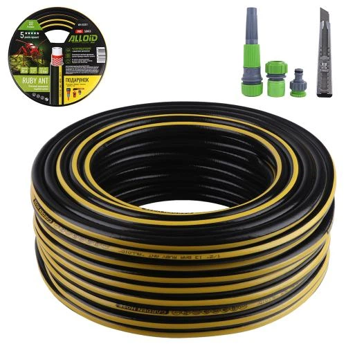 Садовий шланг чотиришаровий Ruby Ant 1/2" 300 см розприскувач Равлик адаптори конектор ніж Alloid Pro