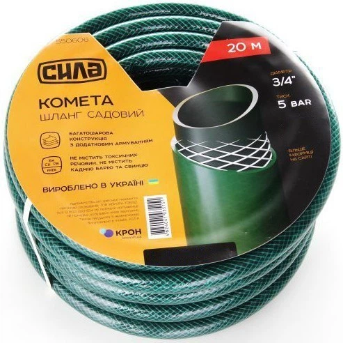 Шланг поливальний Сила 3/4" 30 м тришаровий армований 5 bar зелений УФ стабілізований (000075129)