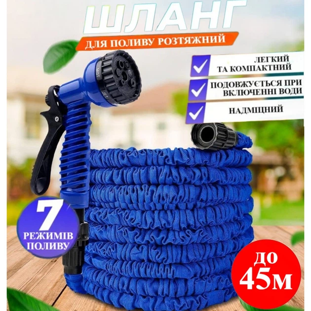Шланг для поливу 45м що розтягується в сад город поливалка шланги для води гнучкі поливальний шланг садовий