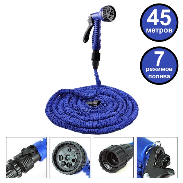 Поливальний садовий шланг XHOSE, що розтягується, 45 метрів з розпилювачем