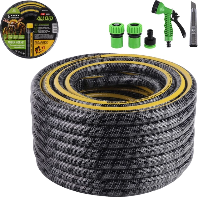 Шланг армований Alloid Pro 4-х шаровий "Amber Hornett" 3/4" 20 м + подарунок (WH-63322)