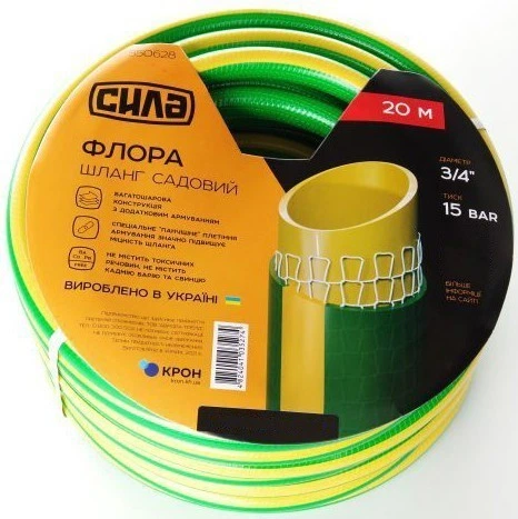 Шланг поливальний Сила 3/4" 20 м тришаровий армований 15 bar зелений УФ стабілізований (000075140)