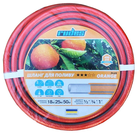 Шланг для поливу Rudes ORANGE PLUS 3 Зірки 25 м 1/2"