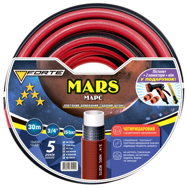 Шланг садовий для поливу Forte Mars 3/4" армований 30 м (BP134520)