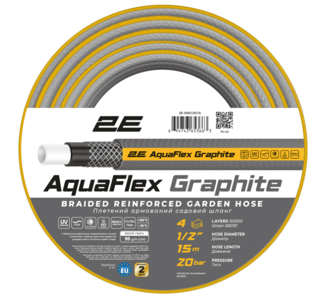 Шланг садовий 2Е AquaFlex Graphite 1/2“ 15м (2E-GHC12C15)
