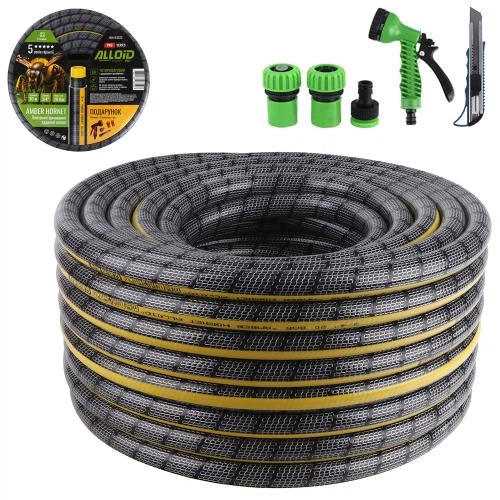 Шланг садовий чотиришаровий Amber Hornett 3/4 300 см комплект пістолет конектори адаптор ніж Alloid Pro