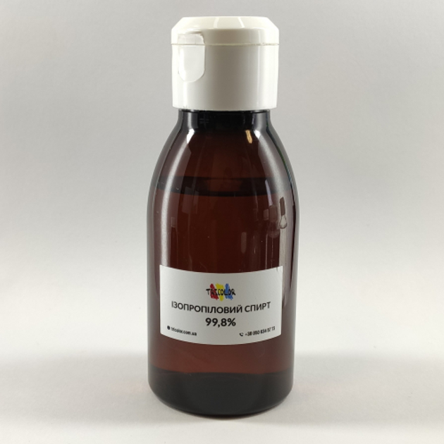 Ізопропіловий спирт 99,8 Tricolor (коричневий флакон, біла кришка фліп-топ) 100 мл. 10 шт.
