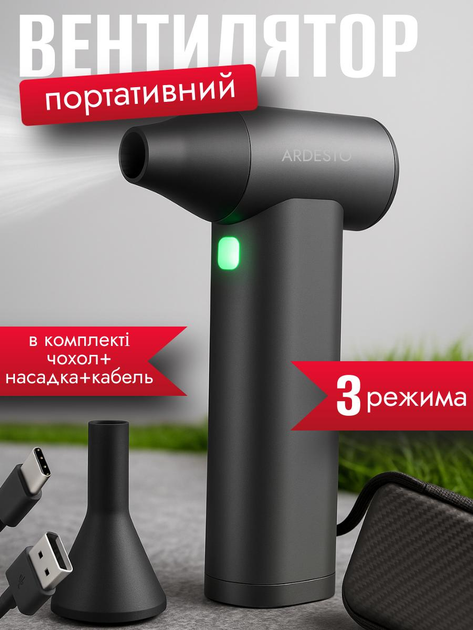 Вентилятор портативний турбо ARDESTO 3в1: охолодження, чищення, надування (FN-HY-110)