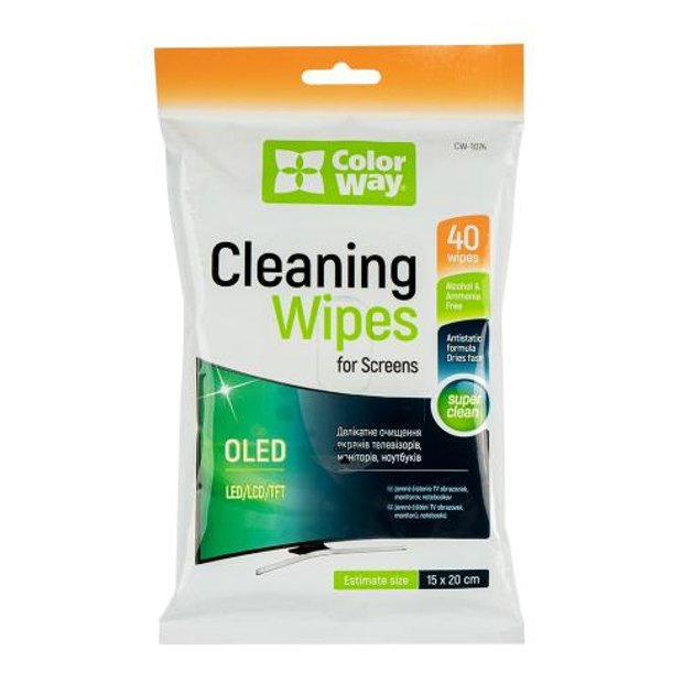 Серветки чистячі ColorWay для екранів, вологі, 40 шт, 15x20 см (CW-1074)