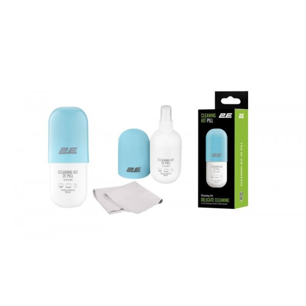 Чистячий набір 2E PILL для оргтехніки рідина 140мл + серветка 20см біло-блакитний 2E-SK140BL