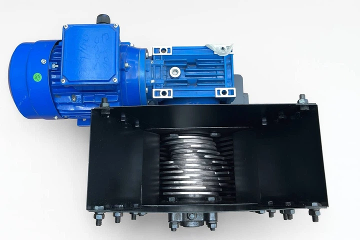 Одновалкова дробарка для пластику, скла та інших матеріалів 200*200 мм із мотор-редуктором 1,5 кВт. Чорний