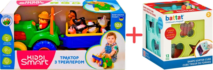 Ігровий набір Трактор Kiddi Smart із трейлером + Розвивальна іграшка-сортер Battat Lite Розумний куб (402208044558476652)