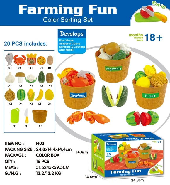 Ігровий набір Фрукти, овочі та морепродукти у відерцях 17 фігурок, 3 відерець) Develops
