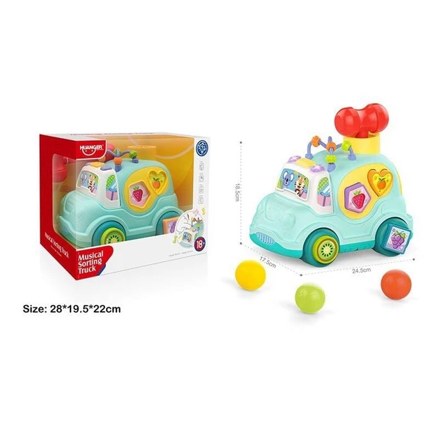 Машинка HE 0547 брязкальця, пальчикова гра, сортер, звуки, мелодії, в коробці