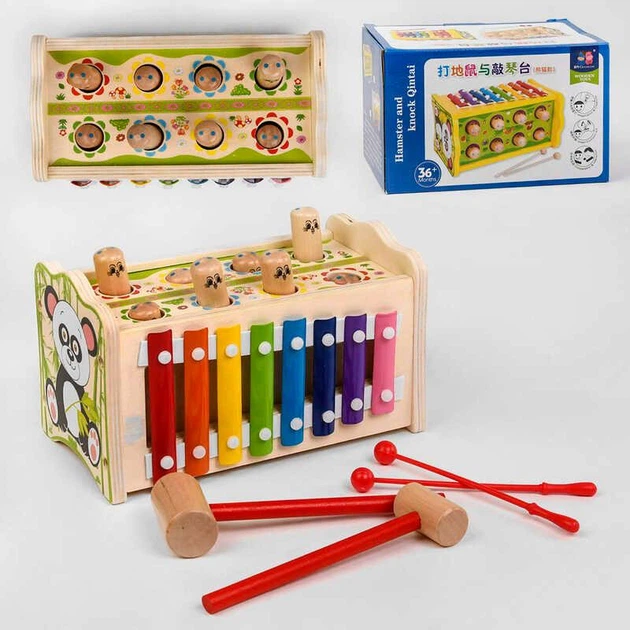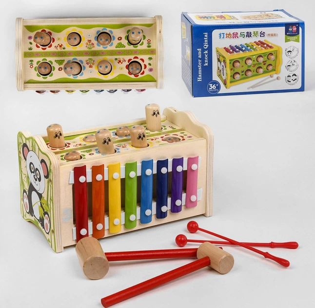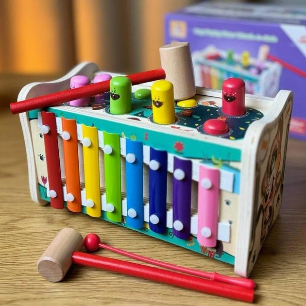 Дерев`яна інтерактивна гра зі стукалкою, ксилофоном, розвиваюча музикальна дитяча гра