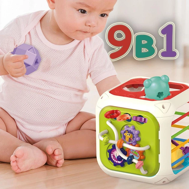 Бізікуб інтерактивна розвиваюча іграшка Монтессорі, дитячий сортер-головоломка для розвитку дитини (дітей)