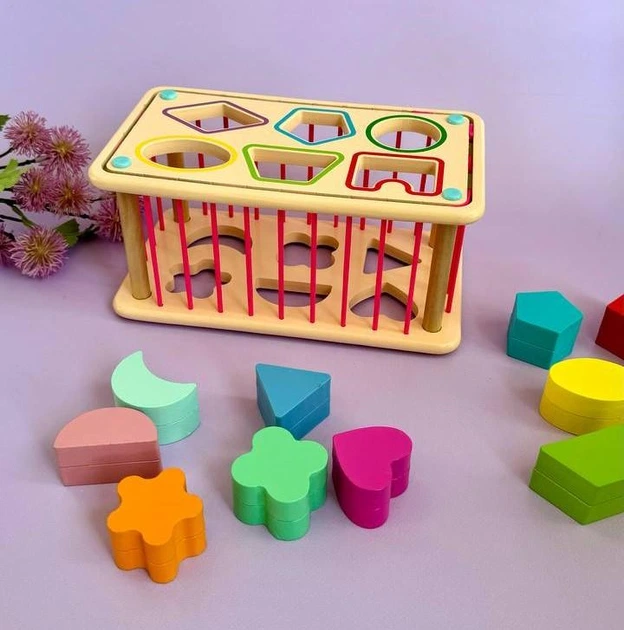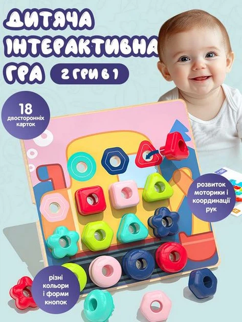 Дерев'яна інтерактивна дошка 5в1 сортер Монтессорі Пакунок малюка