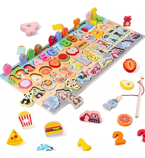 Дерев'яна інтерактивна дошка QWZ Рибалка Фігури Цифри Монтессорі (466)