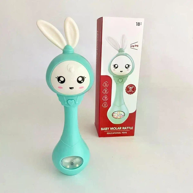Іграшка інтерактивна, брязкальце Зайчик (м'ята) музична розвиваюча, для малюків