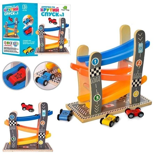 Дерев'яна іграшка автотрек Веселий трамплін з машинками KL MD2646