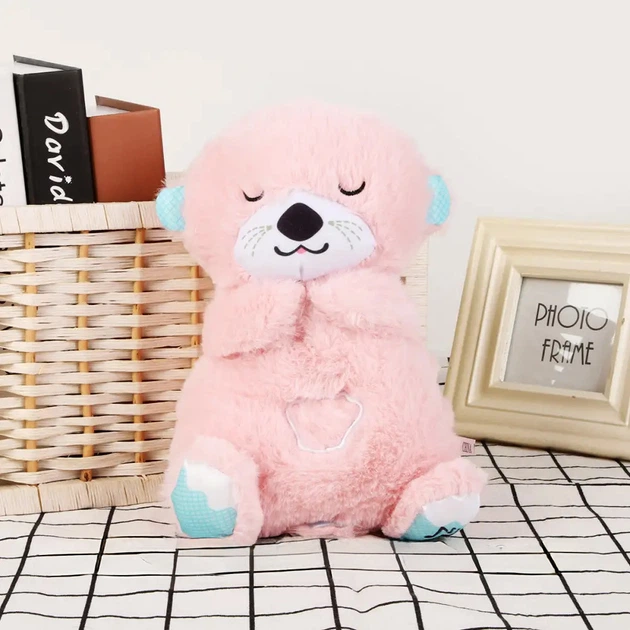 М'яка іграшка нічник для сну видра з животом, що дихає, на батарейках для дітей малюків текстиль 35 см Рожева