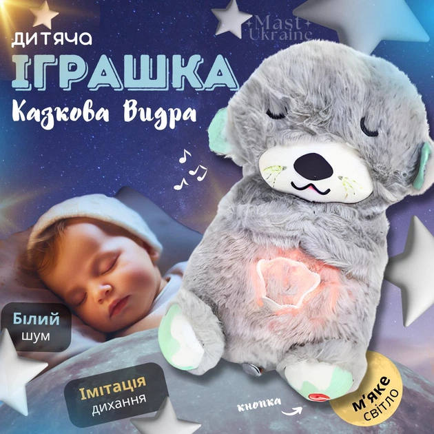М'яка іграшка-нічник для дітей та немовлят "Казкова Видра" з животом, що дихає та підсвіткою, плюшева заспокійлива іграшка в