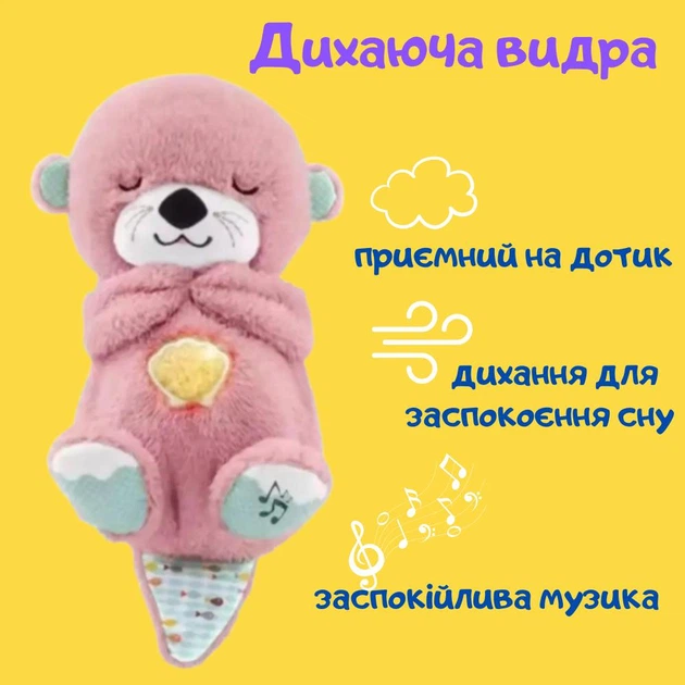 М'яка іграшка нічник спляча Видра дихає зі звуком Рожевий