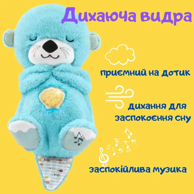 М'яка іграшка нічник спляча Видра дихає зі звуком Видря Блакитний