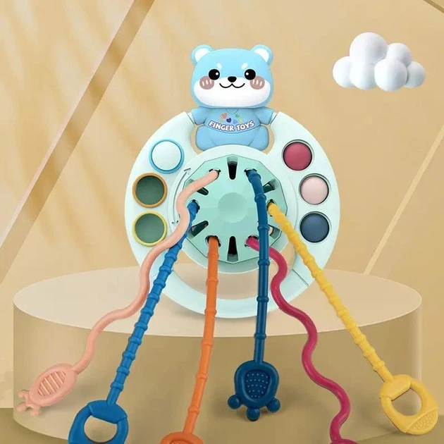 Сенсорна іграшка-тягучка "Ведмедик"(блакитний) розвитку моторики, прорізувач зубів, гризунець, брязкальце Монтессорі