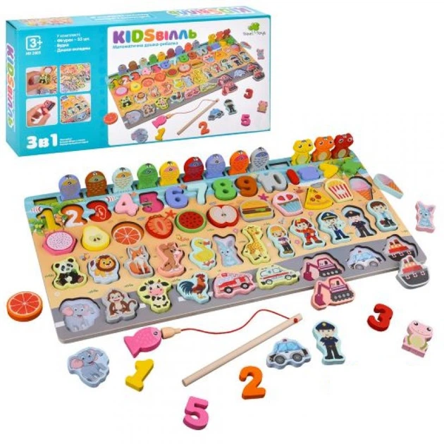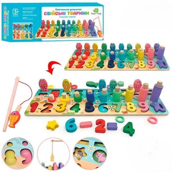Дерев'яна іграшка TreeToy Багатофункціональна дошка 5 в 1 Монесори укр.