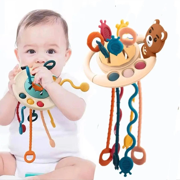 Сенсорна іграшка-тягучка "Ведмедик"(коричнева) розвитку моторики, прорізувач зубів, гризунець, брязкальце Монтессорі