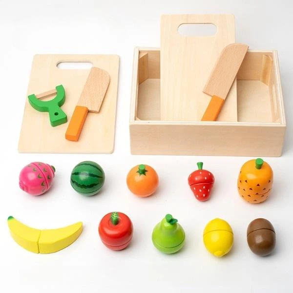 Дерев'яний ігровий набір фруктів для нарізки на магнітах з коробкою, дошками, ножами