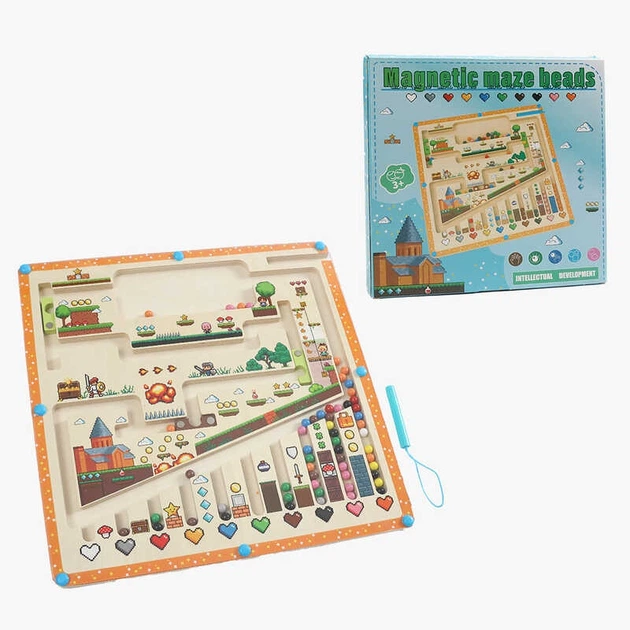 Дерев'яна магнітна гра C 73278 сортер, стілус, 13 двосторонніх карток із завданнями, в коробці