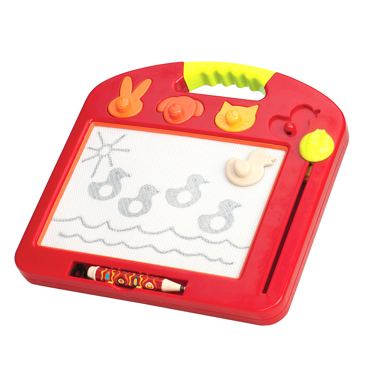 Розвиваюча магнітна дошка для малювання - РАФАЕЛЬ колір томатний Альбом, який ніколи не закінчиться. На випадок, якщо у тебе ніколи не закінчуються ідеї. - Магнітний альбом легко витирається - Опустіть важіль, щоб отримати чистий екран - Завдяки м'якій подушечці на зворотному боці дошки - партою можуть бути коліна. - 4 магнітних штампа-звірятка - Олівець надійно закріплений