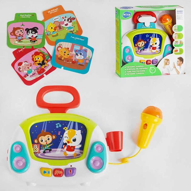 Дитяче Караоке з підсвічуванням, (3138)4 музичні картки, веселі мелодії. звукозапис, мікрофон, в коробці