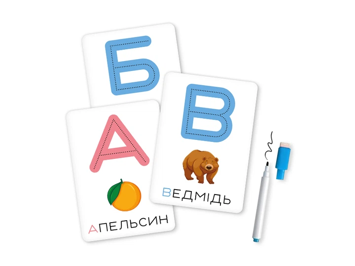 Багаторазові картки пиши-стирай Vit-Design “Літери” (Абетка) (ламіновані картки для дітей з маркером)