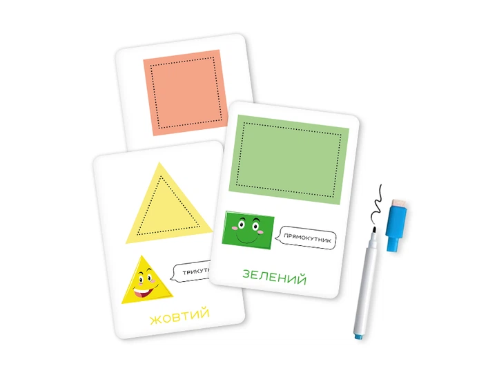 Багаторазові картки пиши-стирай Vit-Design “Кольори” (форми, геометричні фігури для дітей з маркером)