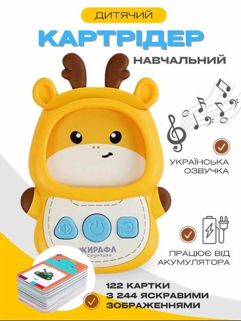 Навчальний картридер 122 картки, 244 зображення Жирафа Всезнайко 30317 Українька озвучка