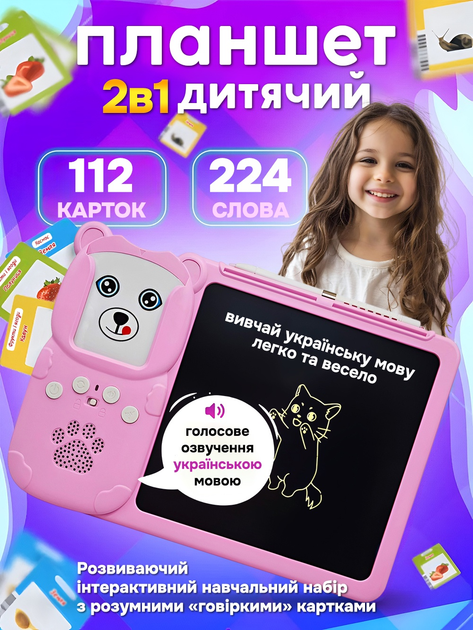 Навчальний картридер Всезнайко 94930 WToys Українька озвучка,112 картки, 224 зображення Рожевий