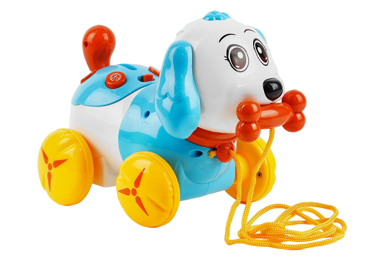 Музична каталка на мотузочку YL617B для малюків Цуценя скарбничка, каталка