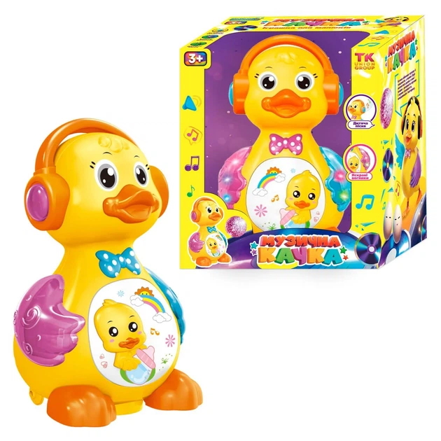 Музична качка 48510 / 0619 (40/2) "TK Group", ОЗВУЧУВАННЯ УКР. МОВОЮ, світло, звук, колесо вільного ходу, несе яйця, в короб