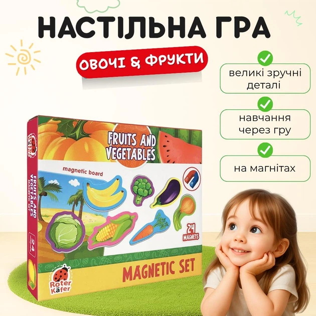 Набір магнітний з дошкою для розвитку дітей Roter Kafer Овочі та фрукти RK2090-06